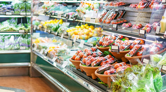 ②ドリンク各種 ③海産物各種 ④米 ⑤漬物